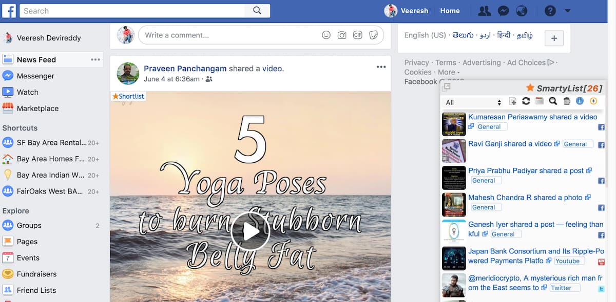 Facebook homepage