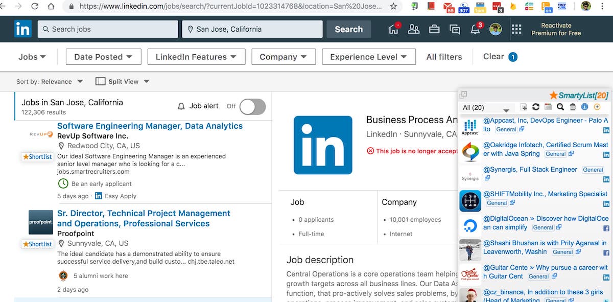 Linkedin jobs browser page