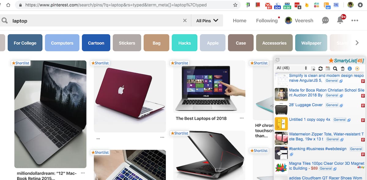 Pinterest search page