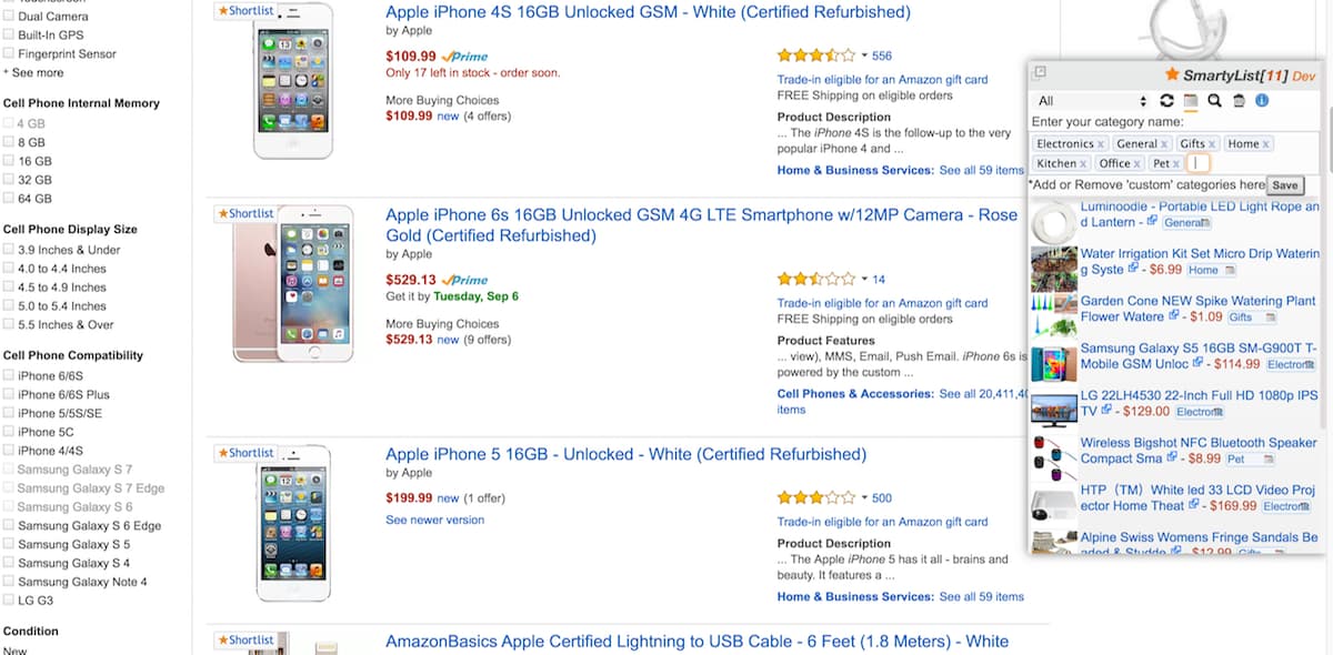 Amazon search results as list