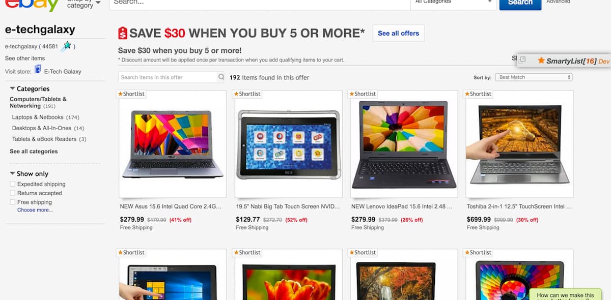 Ebay search results