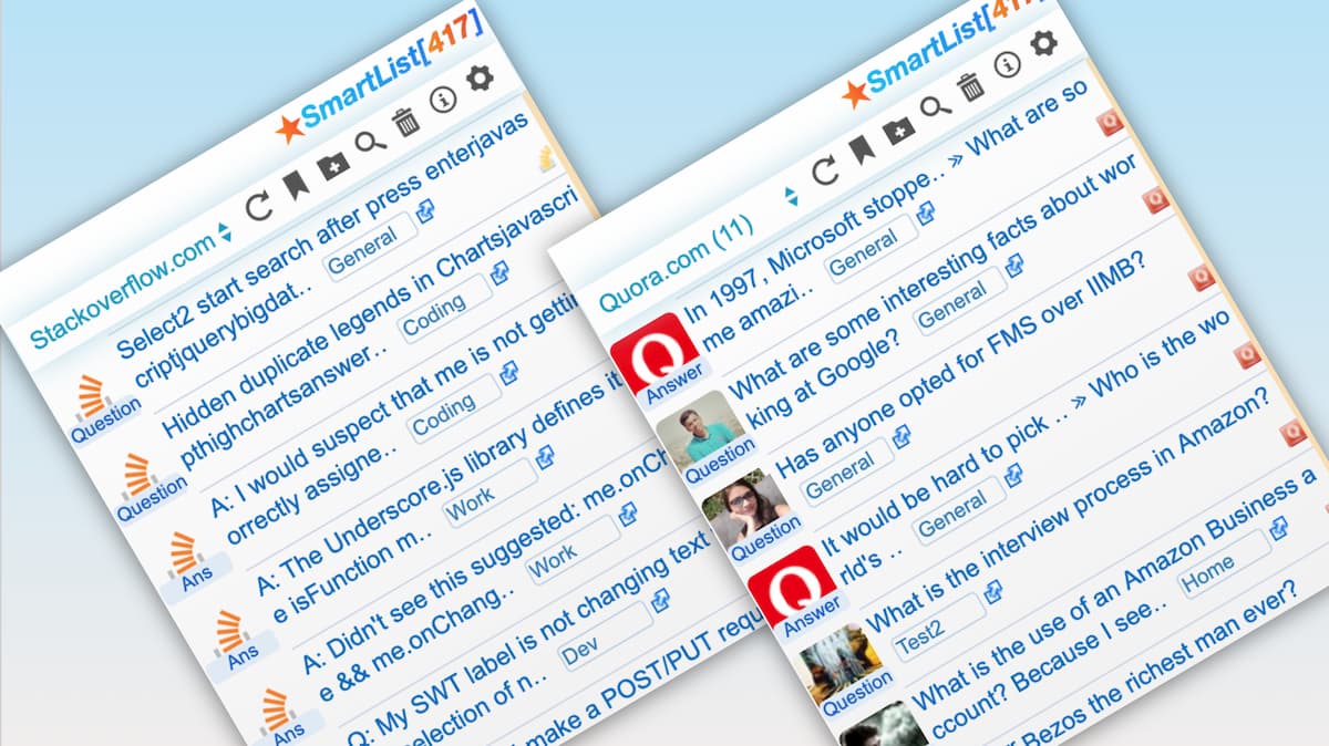 In case of Facebook and Twitter, many users have too many use cases. One would often visit those sites, either to contact a Profile, Messaging, and mostly to browse randoms feed news (plain text, photos, videos, shared articles etc). So, a set of users would Shortlist any interested feed news, another set of users would Shortlist most important profiles to contact quickly, similarly a journalist or an editor would often Shortlist related articles, text and media content, so that they can compile and produce more news. Having 2.5 billion users on Facebook and Twitter, how and what the SmartyList can let them create Shortlists for thousands of use cases is beyond comprehension.
